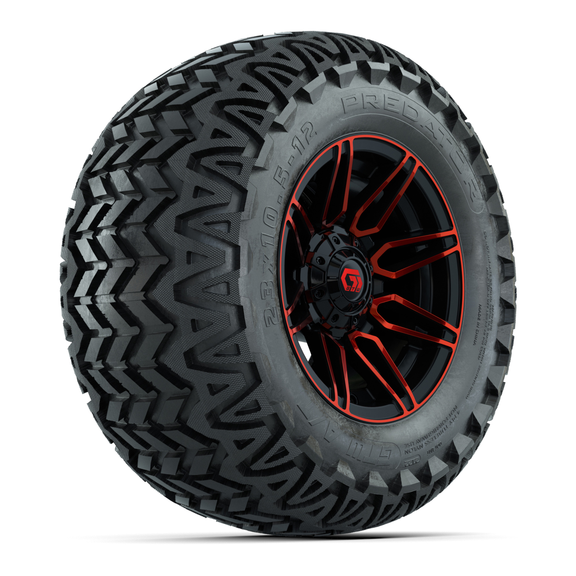 GTW® Stellar Black 12 in Wheels with 255/55-R12 Fusion GTR Steel Belt Radial Street Tires – Full Set