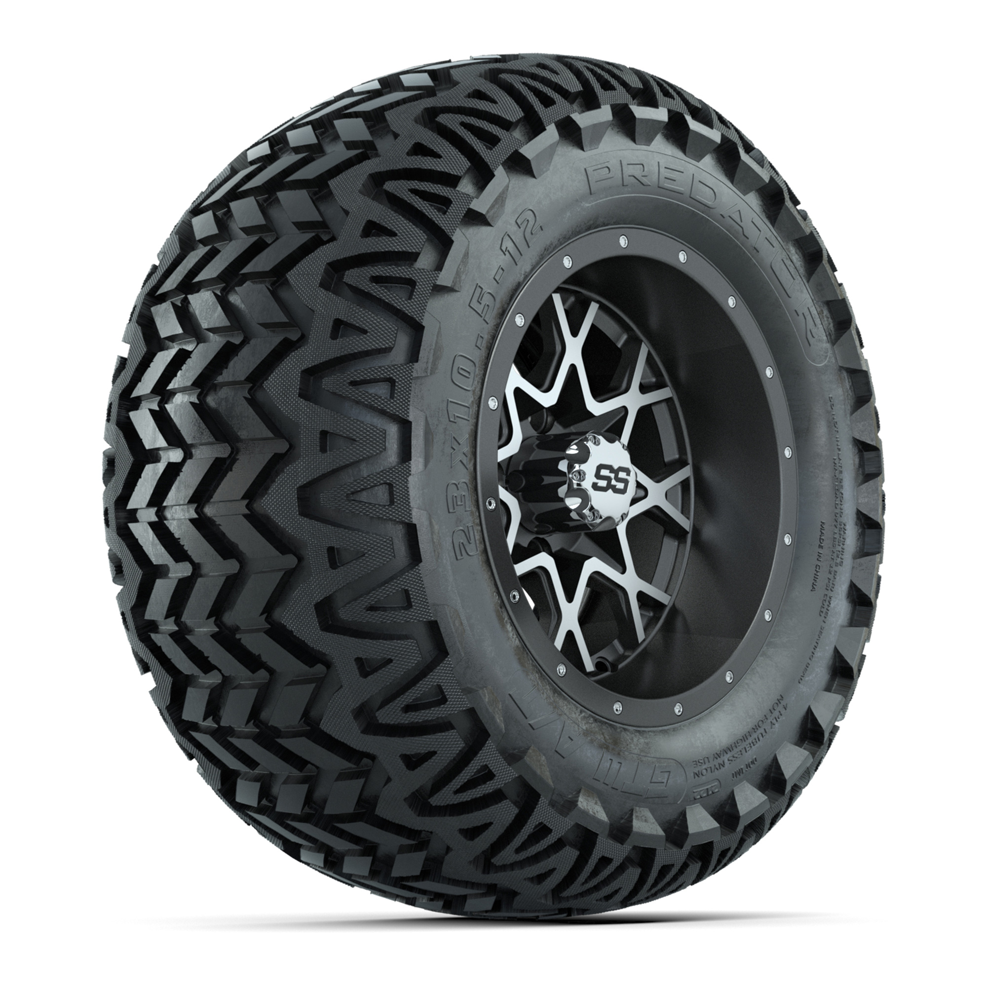 GTW® Vortex 2 Matte Gray/Machined 12 in Wheels with 22X10-12 Timberwolf All-Terrain Tires – Full Set