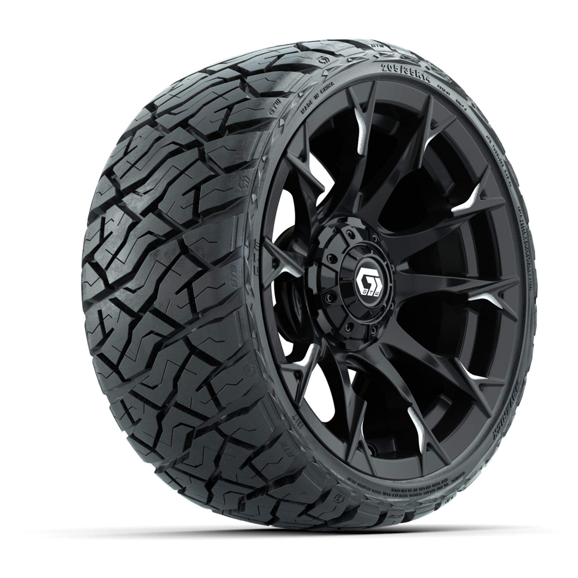 GTW Diablo Gloss Black/Machined 14 in Wheels with 23x10.00-R14 Maverick All-Terrain Tires – Full Set