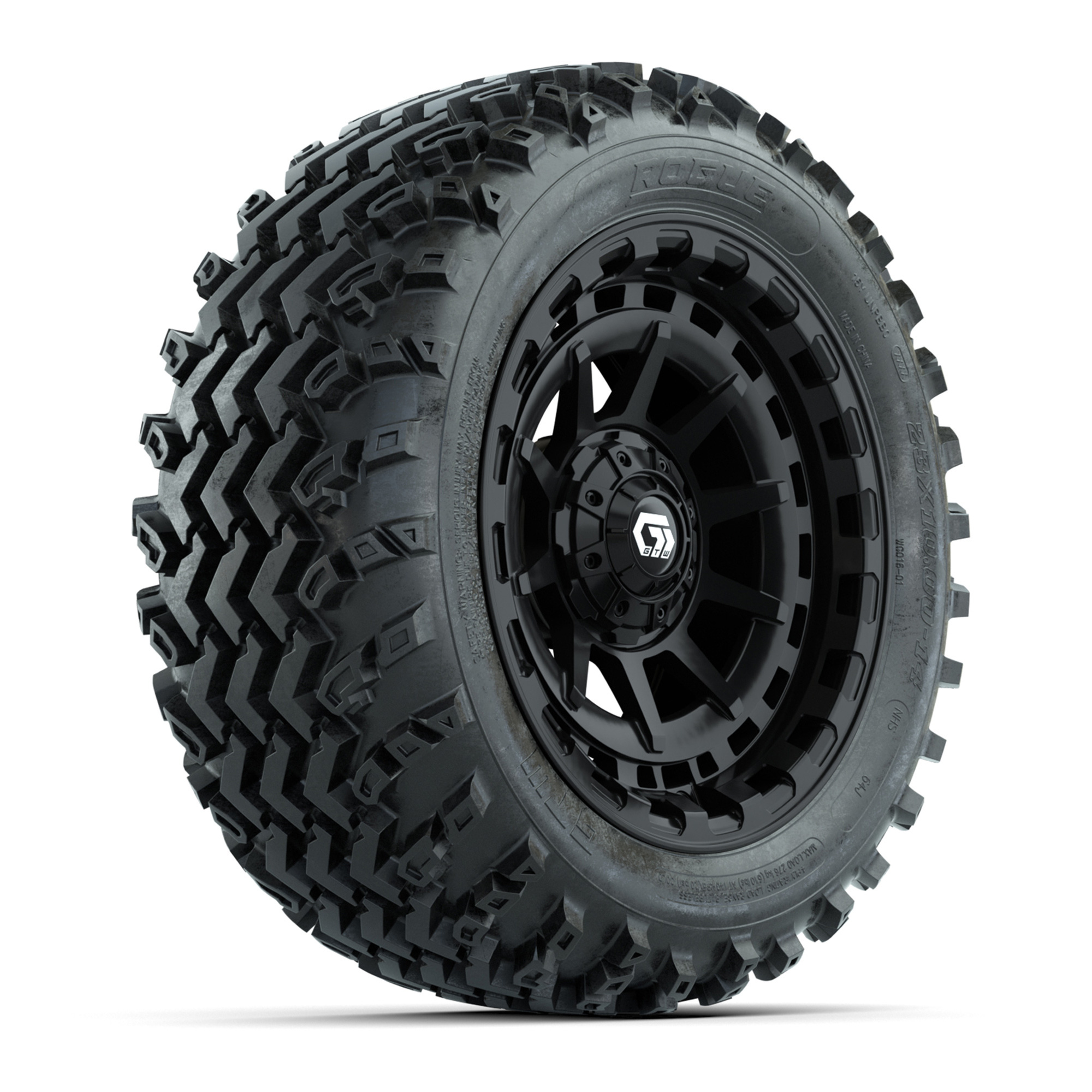 GTW Vortex Matte Black 12 in Wheels with 215/40-R12 Maverick Low-Profile All-Terrain Tires – Full Set