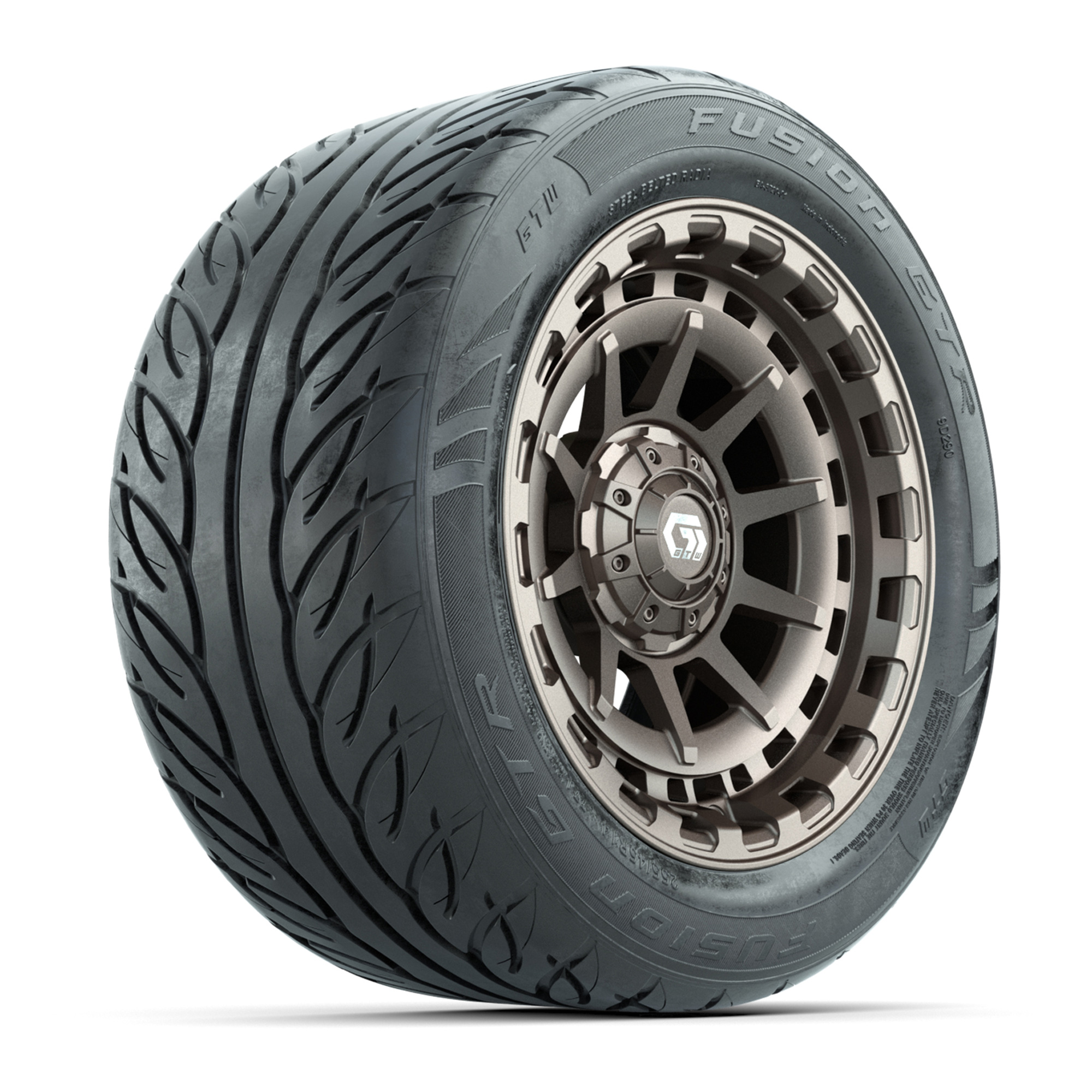 GTW® Barricade Bronze 14 in Wheels with 255/45-R14 Fusion GTR Steel Belt Radial Street Tires – Full Set