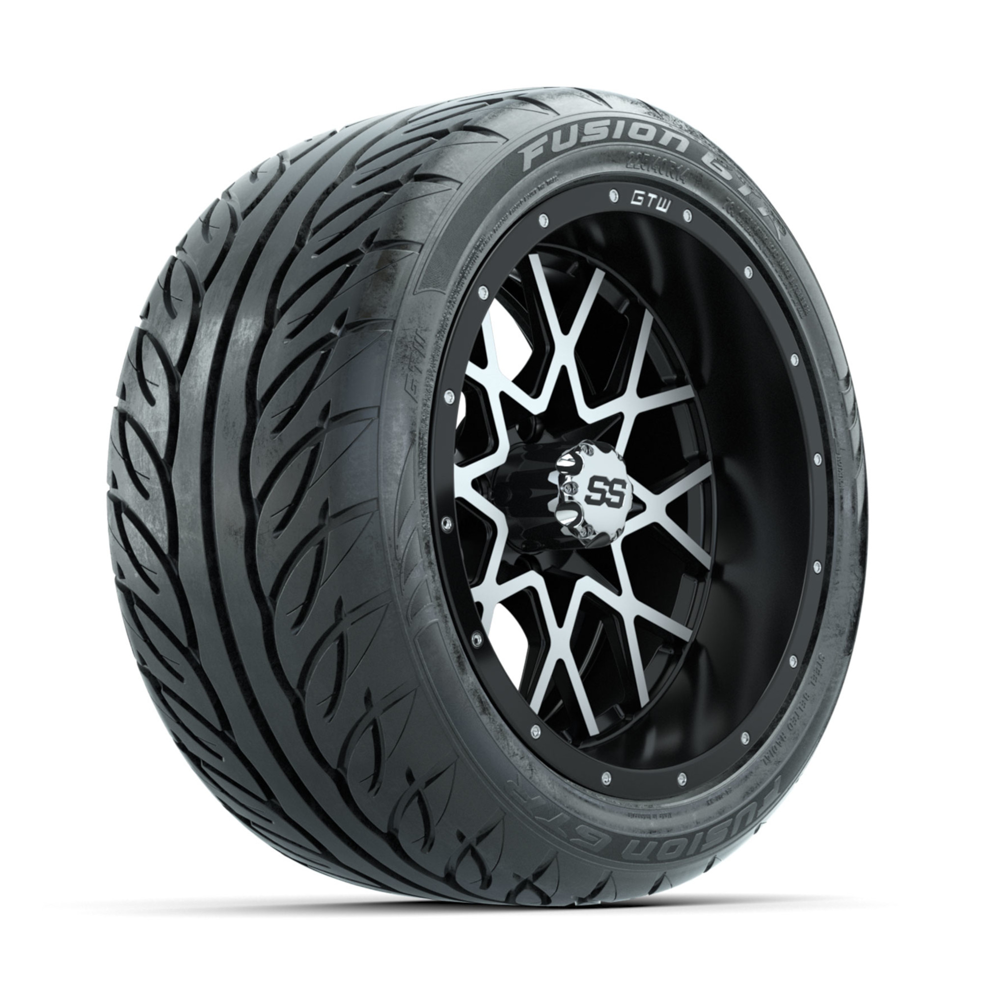 GTW Vortex Machined/Matte Black 14 in Wheels with 225/40-R14 Fusion GTR Street Tires – Full Set