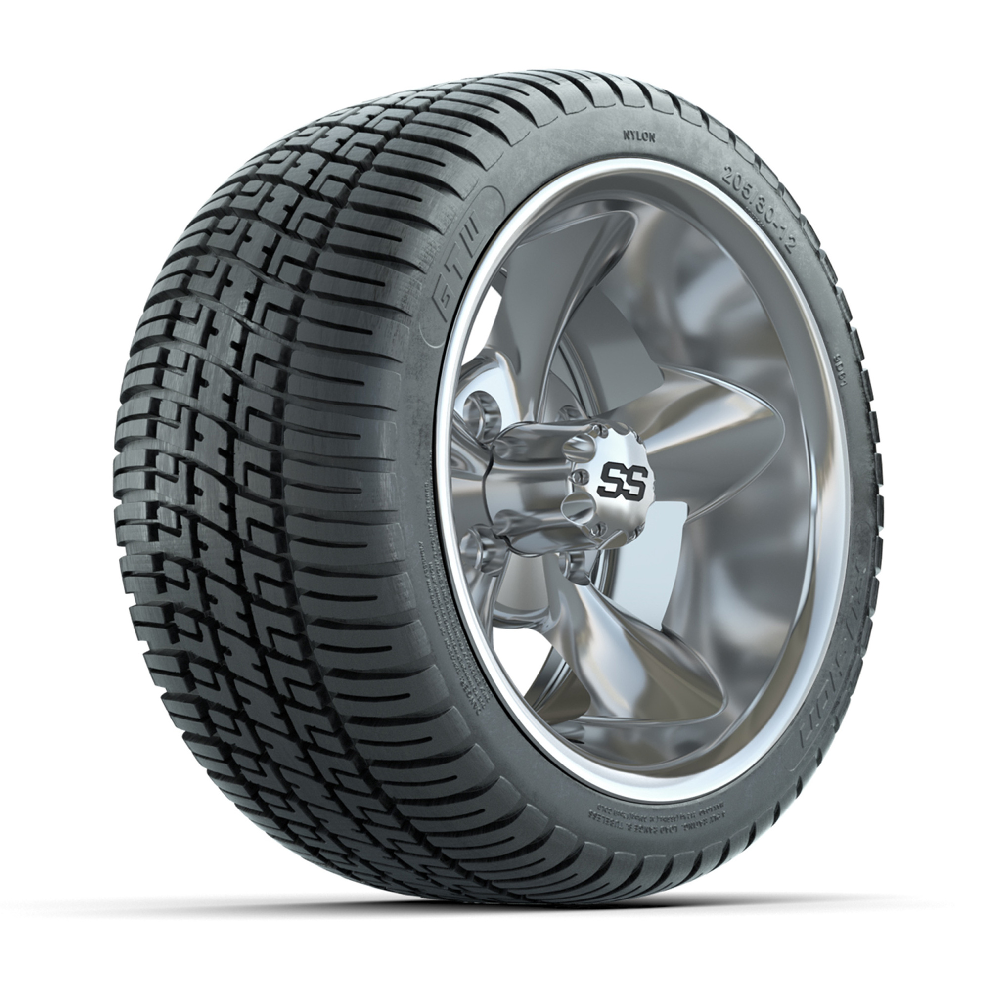 GTW® Godfather Chrome 12 in Wheels with 205/30-12 Fusion Street Tires – Full Set