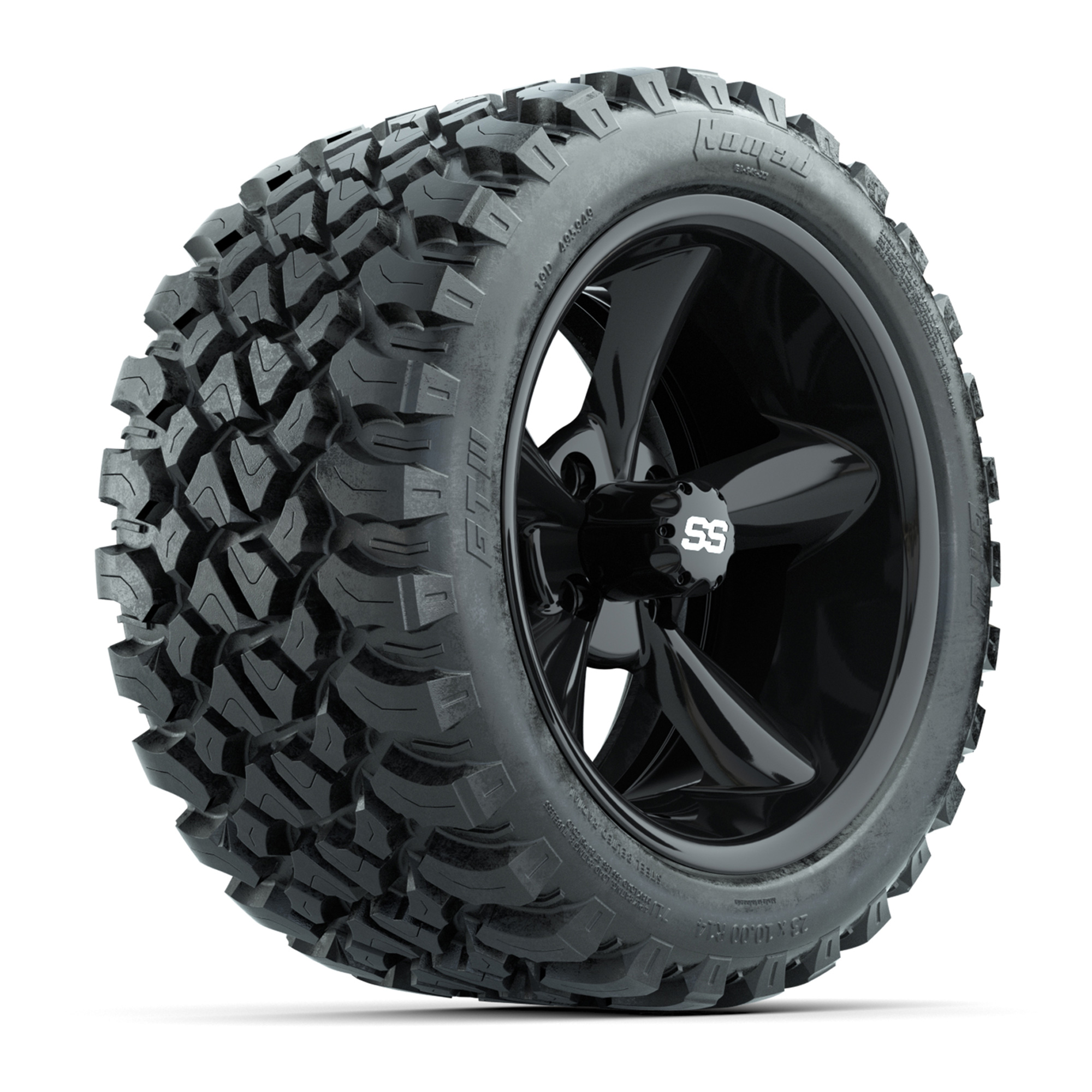 GTW® Diablo Gloss Black/Machined 14 in Wheels with 23X10-R14 Nomad Steel Belt Radial All-Terrain Tires – Full Set