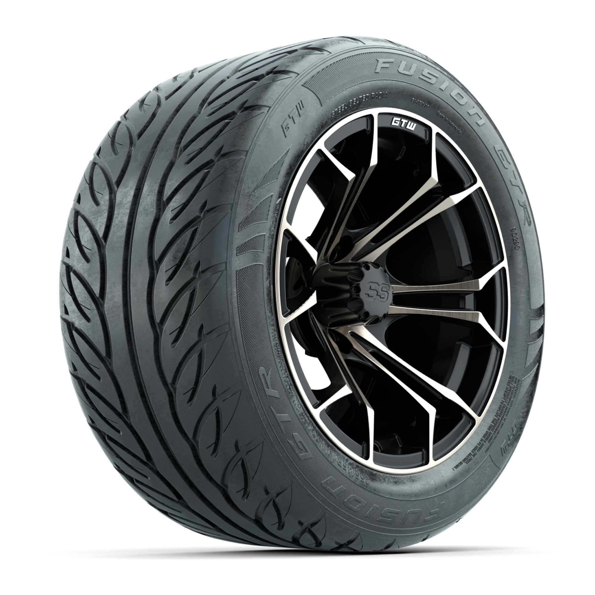 GTW® Spyder Black/Machined 12 in Wheels with 215/40-R12 Fusion GTR Steel Belt Radial Street Tires – Full Set