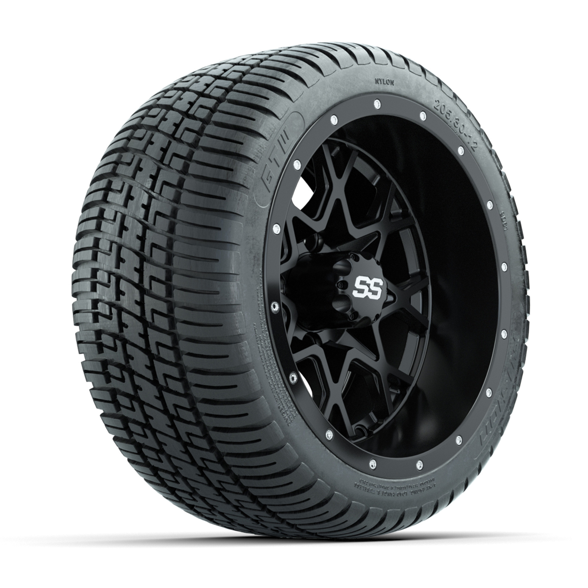 GTW® Vortex 2 Matte Black/Machined 12 in Wheels with 215/40-R12 Fusion GTR Steel Belt Radial Street Tires – Full Set