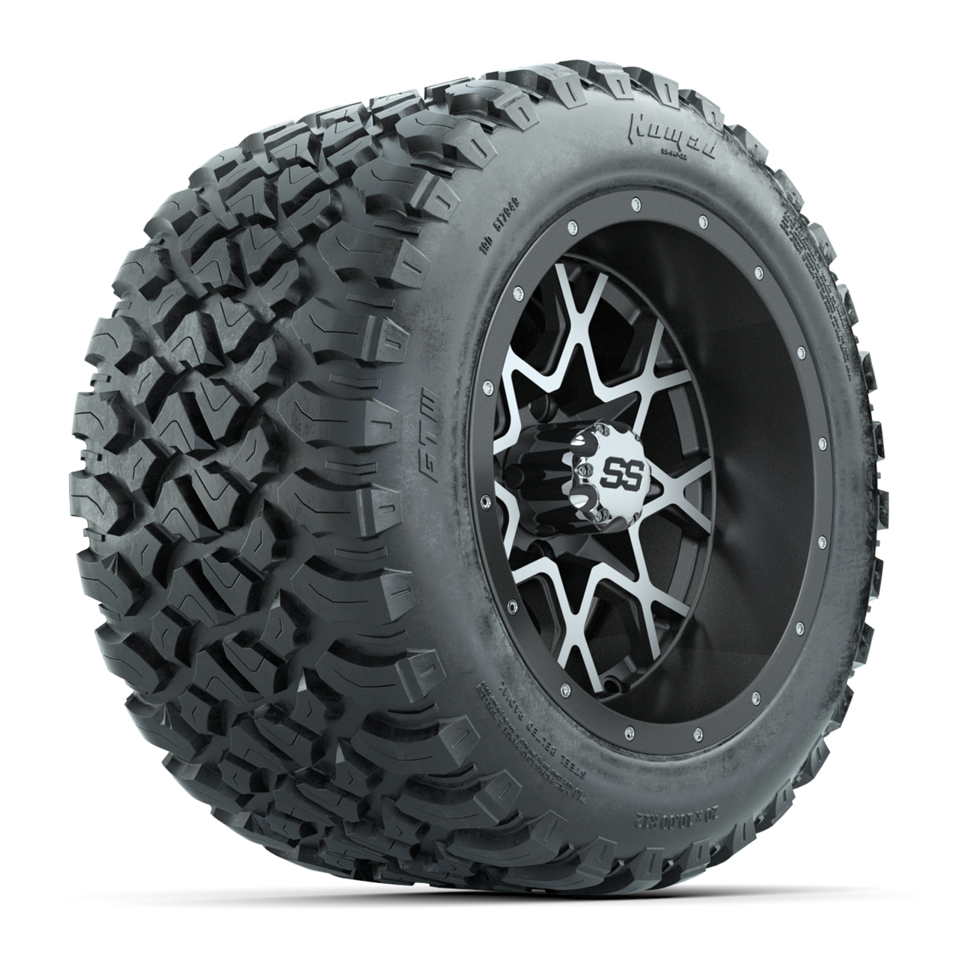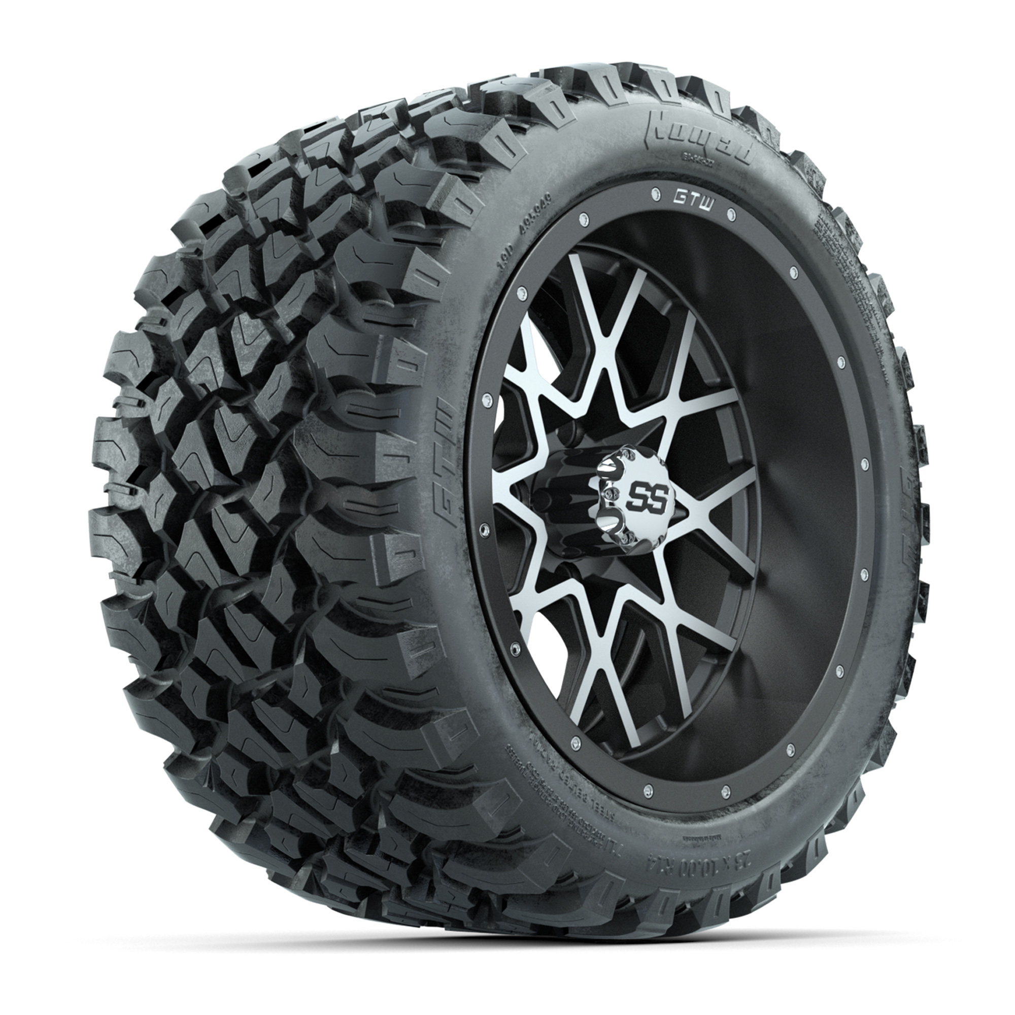 GTW® Vandal Matte Black/Machined 14 in Wheels with 22x10-14 Timberwolf All-Terrain Tires – Full Set