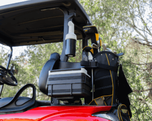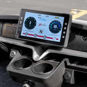 The MadJax® XSeries® X2 was designed to keep up with you and your game on the green while looking good. Standard equipment includes a scorecard holder steering wheel, cooler and side bracket, ball washer, two sand bottles and holders, and a golf bag harness with room for two club bags.